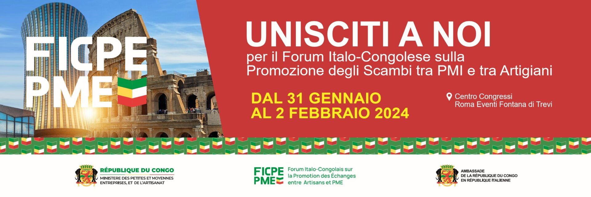 L’Ambasciata della Repubblica del Congo, in collaborazione con il Ministero delle Piccole e Medie Imprese e dell’Artigianato, sotto l’alto patrocino del Presidente della Repubblica del Congo Sua Eccellenza Denis SASSOU NGUESSO, organizza dal 31 gennaio al 02 febbraio 2024 un Forum Economico denominato: