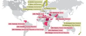 Situazioni peggiori in termini di sicurezza si registrano solo nel medio oriente con Damasco, Sana’a e Bagdad ai piedi della lista. (fonte web)